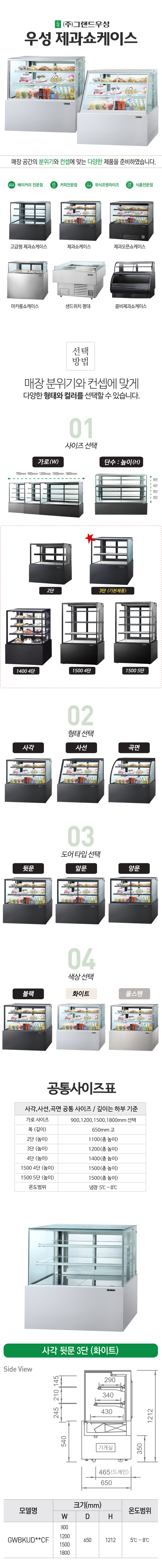 그랜드우성 제과 쇼케이스 렌탈 1500 사각 뒷문형 3단 간냉식 화이트 60개월