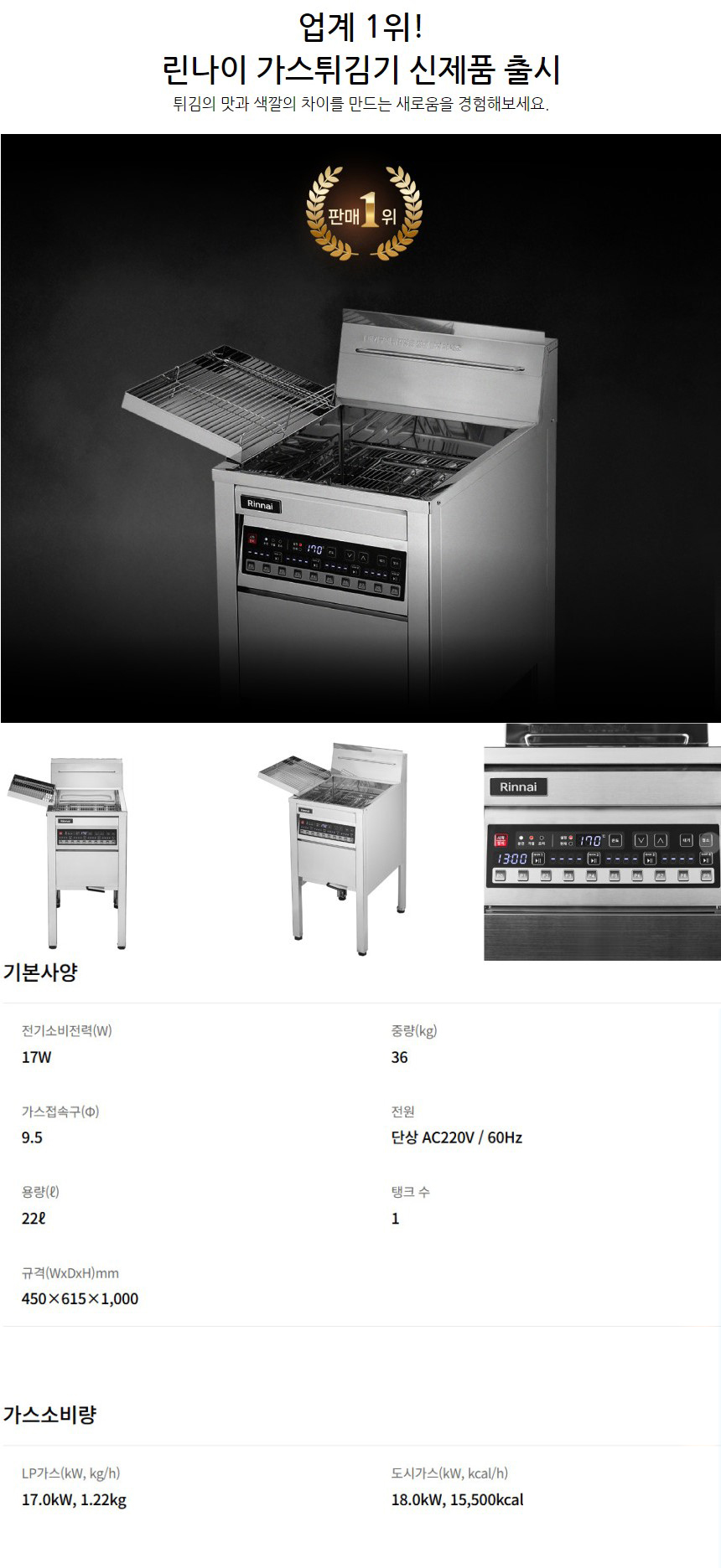 린나이 업소용 튀김기 렌탈 가스 22L 60개월
