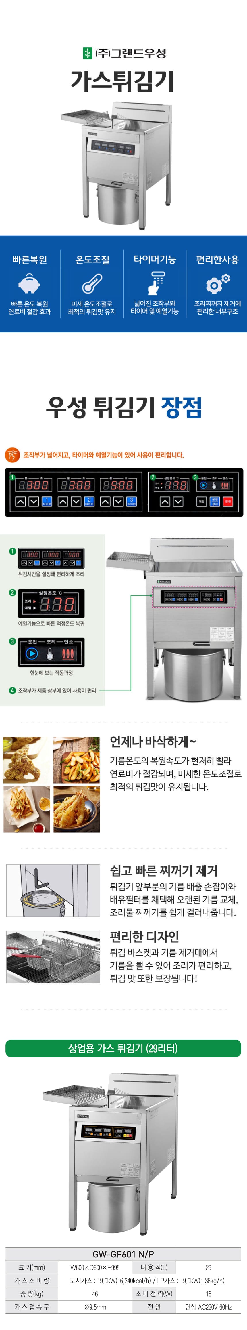 그랜드우성 업소용 튀김기 렌탈 가스 29L LPG or LNG 선택 60개월