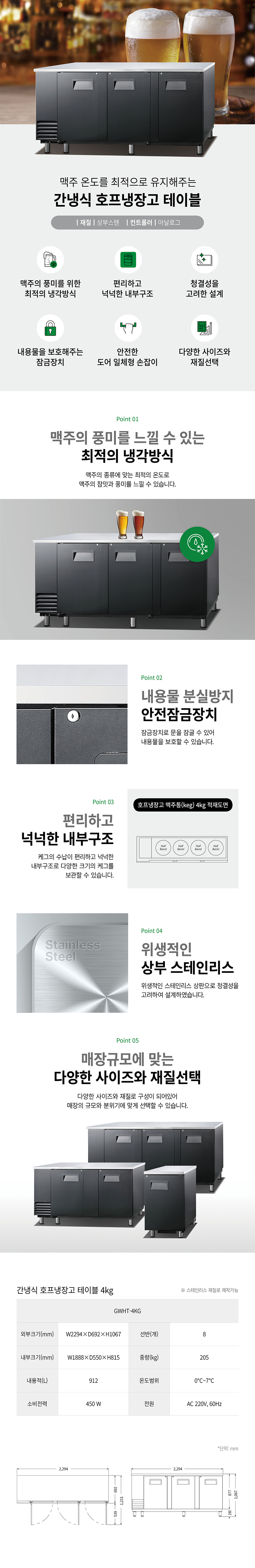 그랜드우성 4KG 간냉식 테이블 호프냉장고 렌탈 60개월