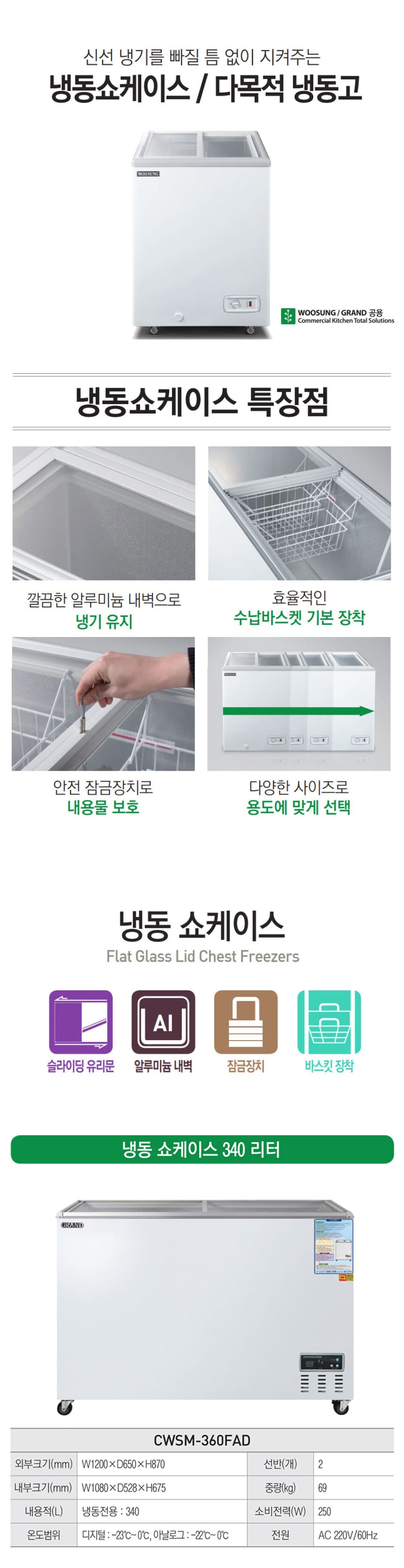 그랜드우성 냉동 쇼케이스 렌탈 340L 60개월