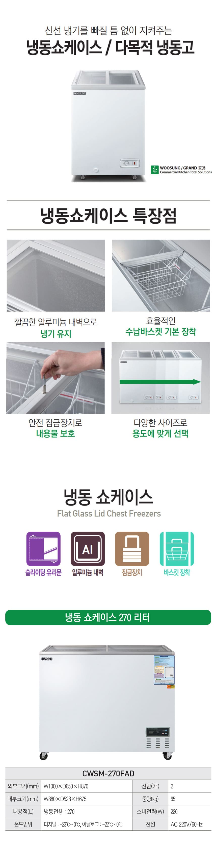 그랜드우성 냉동 쇼케이스 렌탈 270L 60개월