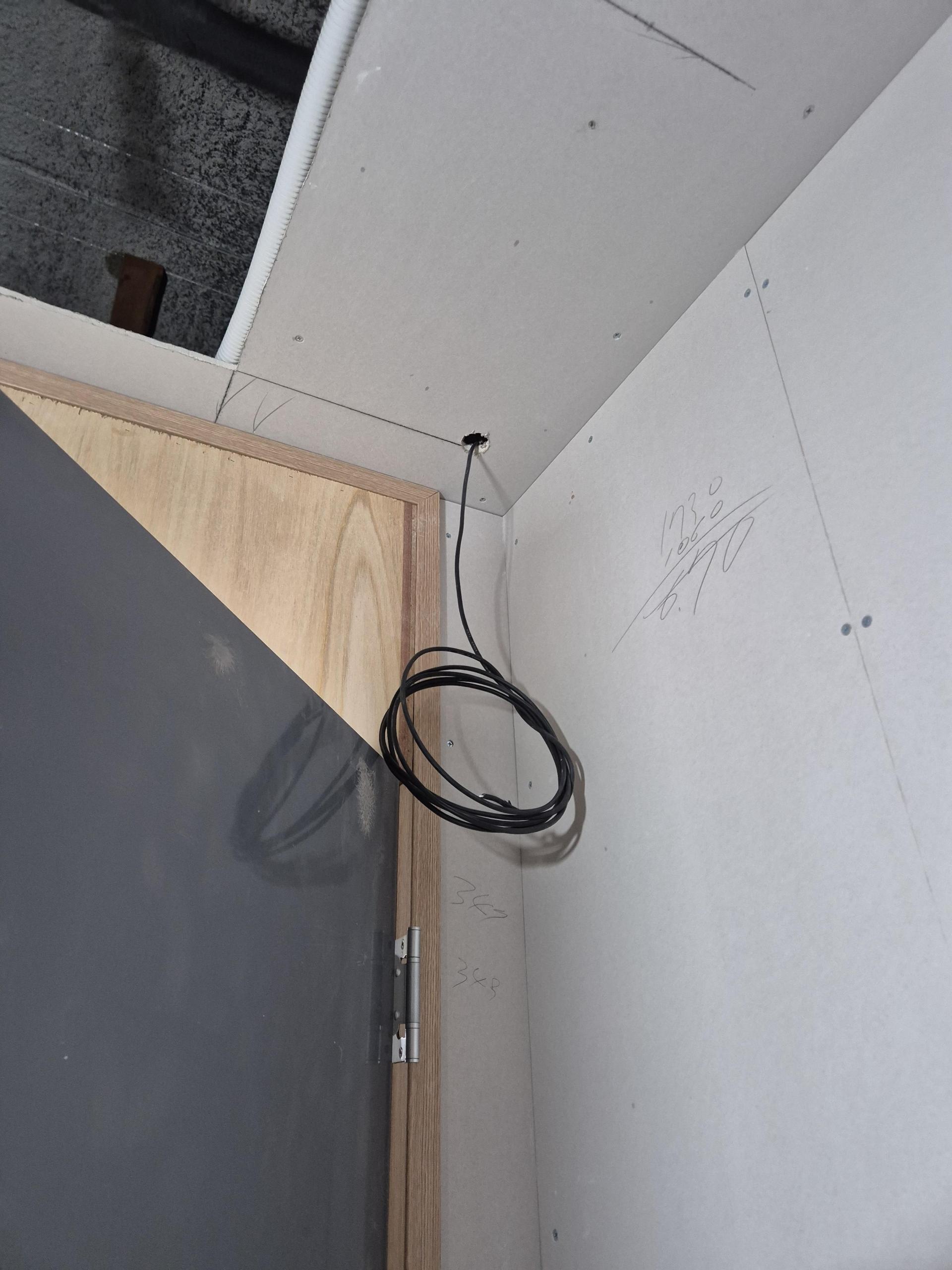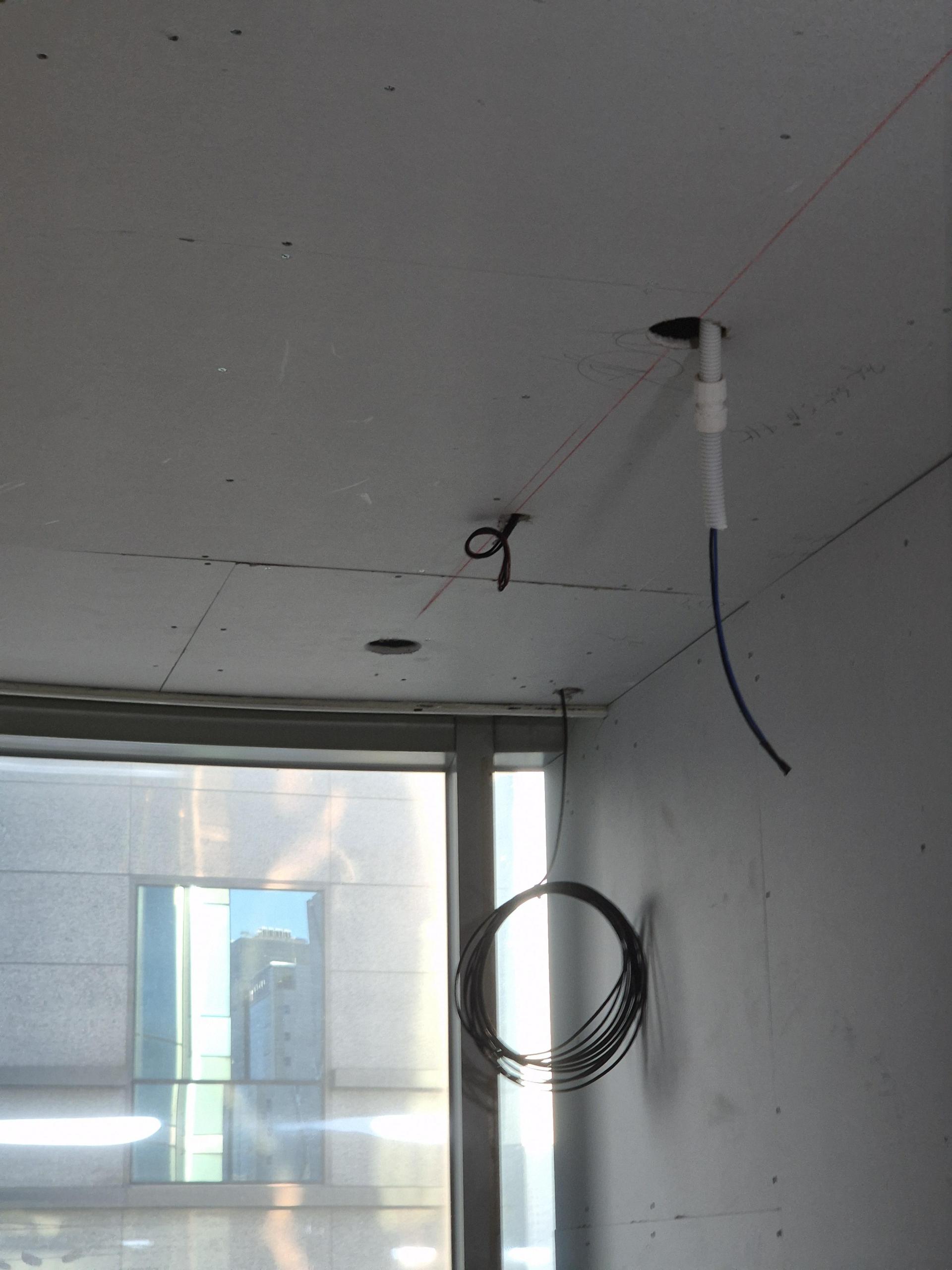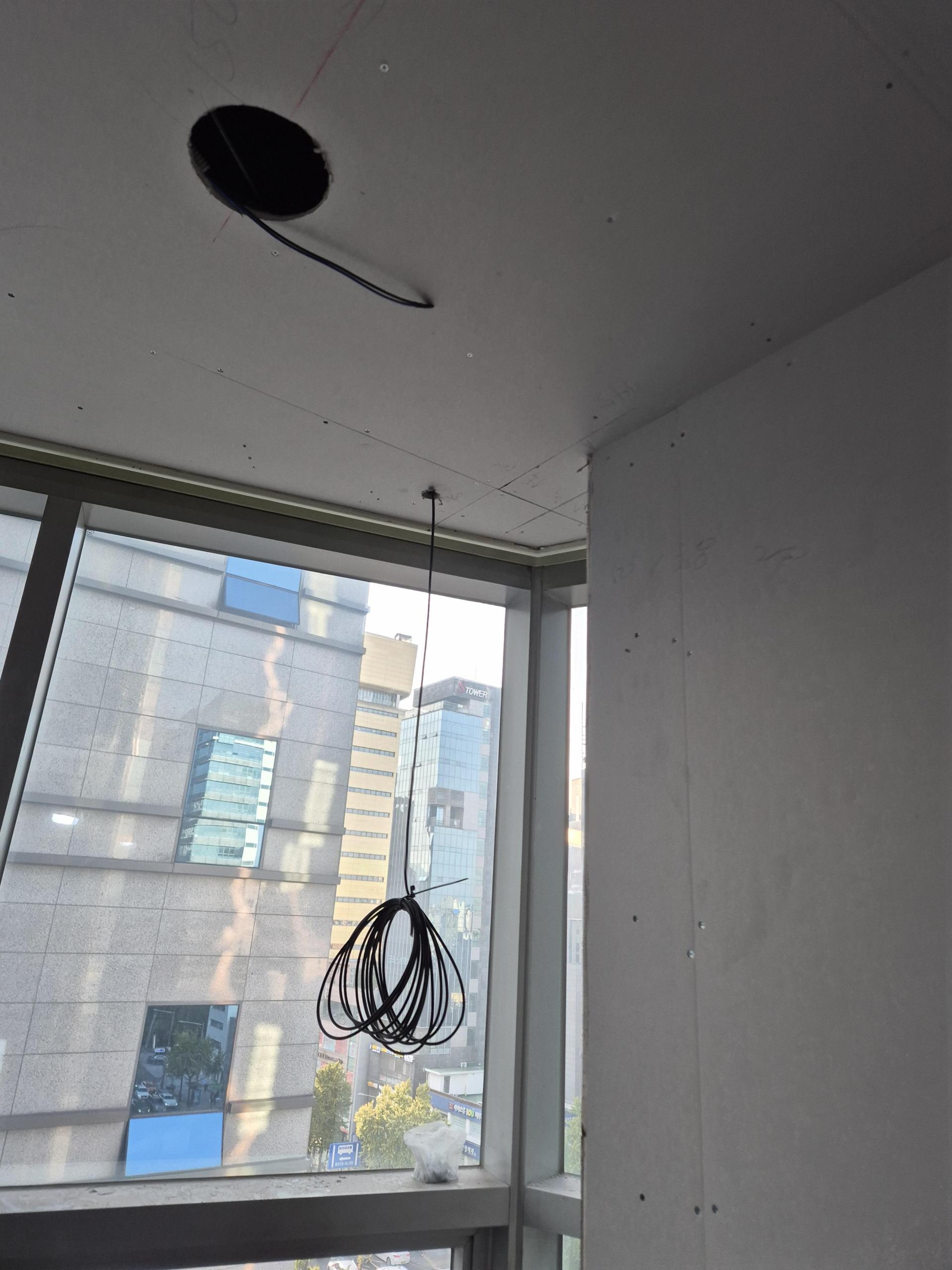 벽체 마감과 천장 구조가 완성되기 전에 케이블을 미리 넣어두어, 인테리어 후에는 노출선 없이 깔끔한 마감이 가능하도록 설계했습니다.