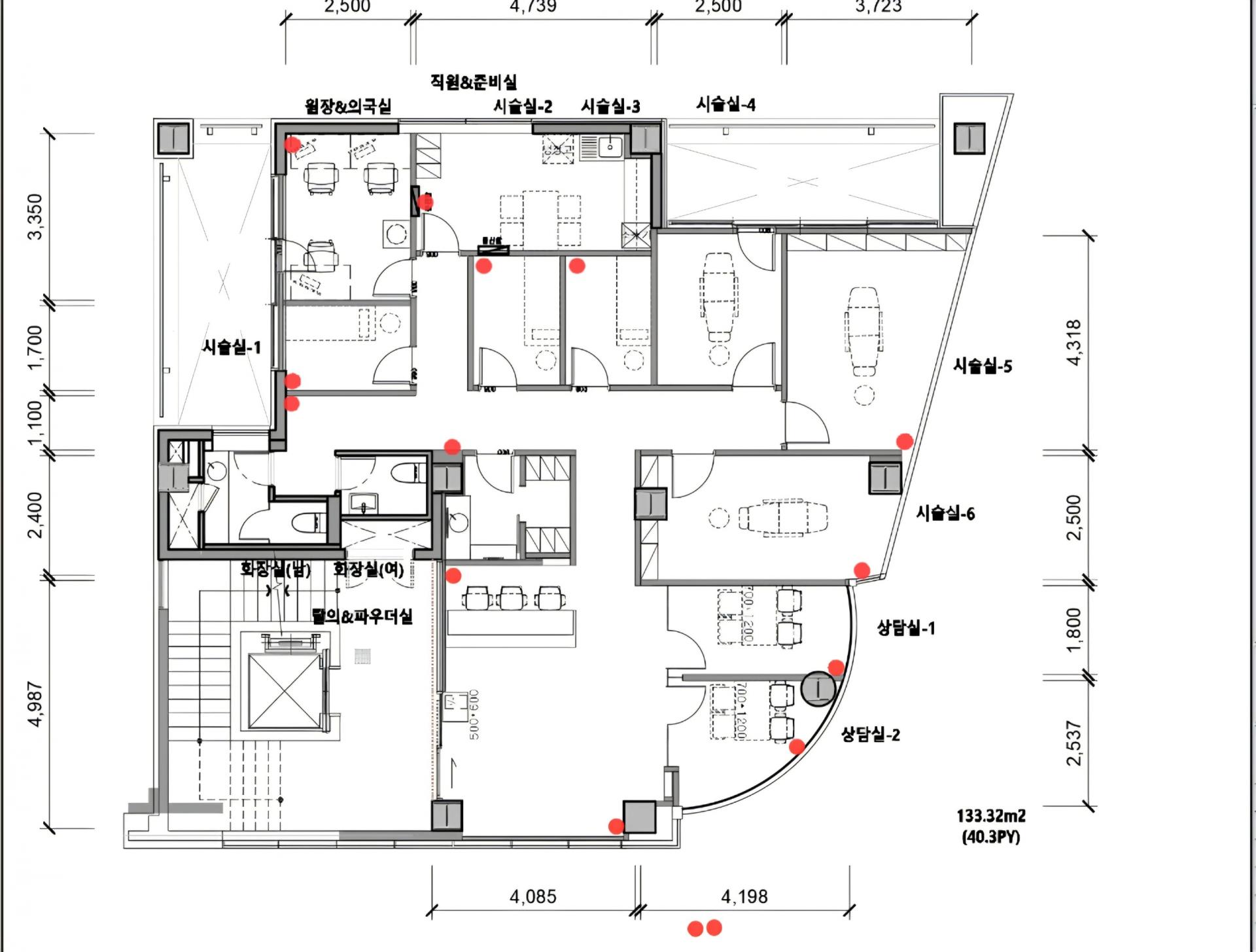 현장 방문 후 의사실, 시술실, 대기실, 카운터, 복도 등 총 14개 구간의 카메라 설치 위치와 녹화기 설치 공간을 사전 협의했습니다.