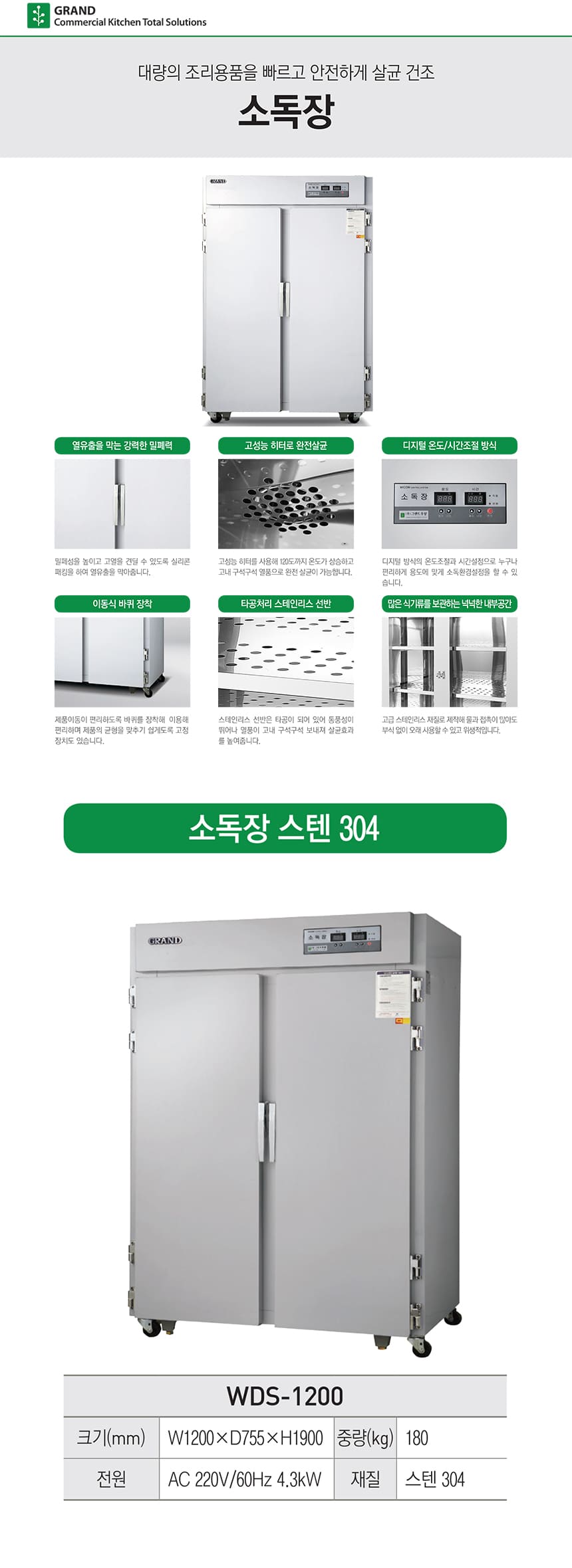 그랜드우성 식기소독장 렌탈 스텐 304-1200 60개월