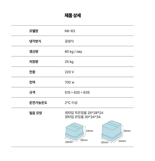 카이저 업소용 제빙기 렌탈 60kg 공랭식 작은얼음