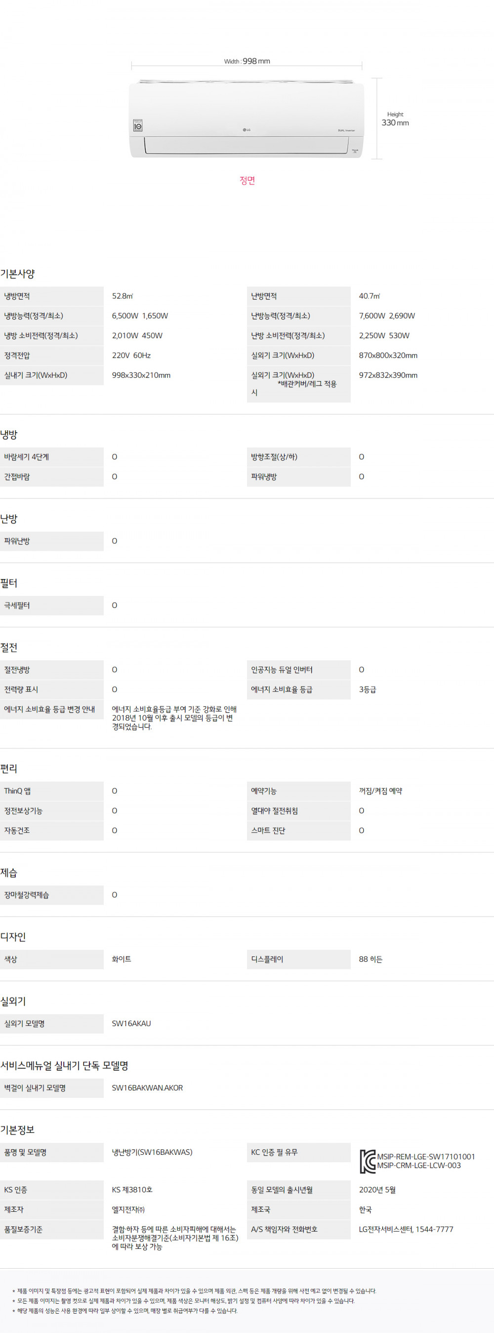LG 벽걸이 냉난방기 렌탈 휘센 16평형 60개월