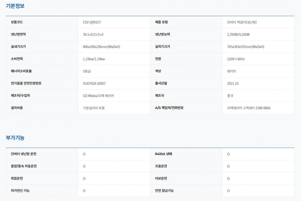 캐리어 벽걸이 냉난방기 렌탈 인버터 스탠다드 9평형 60개월