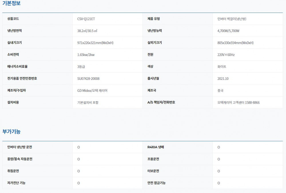 캐리어 벽걸이 냉난방기 렌탈 인버터 스탠다드 12평형 60개월