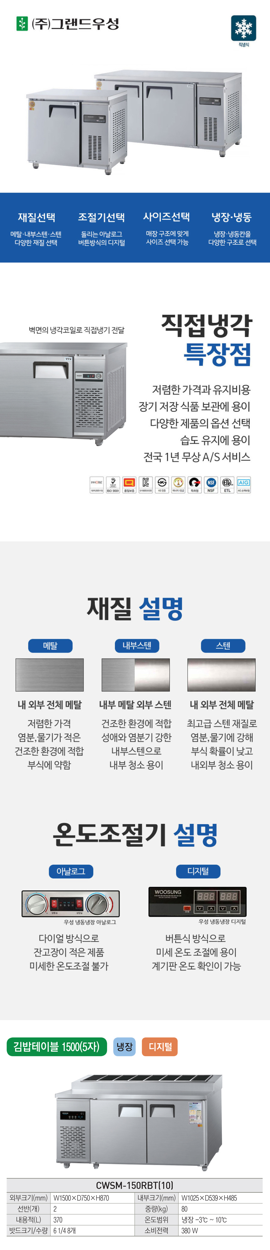 그랜드우성 김밥 냉장고 렌탈 직냉식 296L 올스텐 60개월