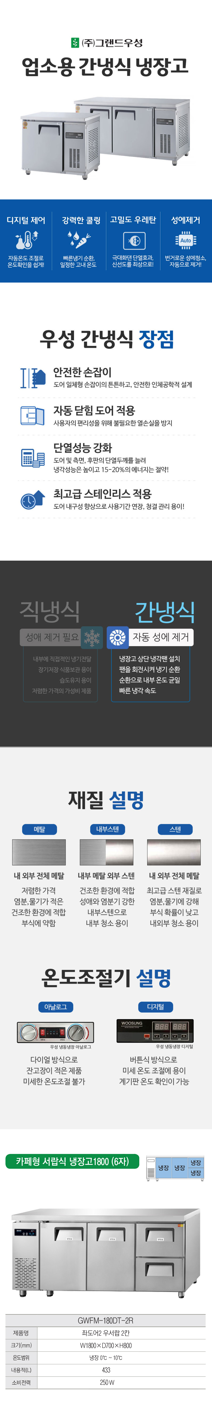 그랜드우성 카페형 서랍 냉장고 렌탈 간냉식 433L 60개월
