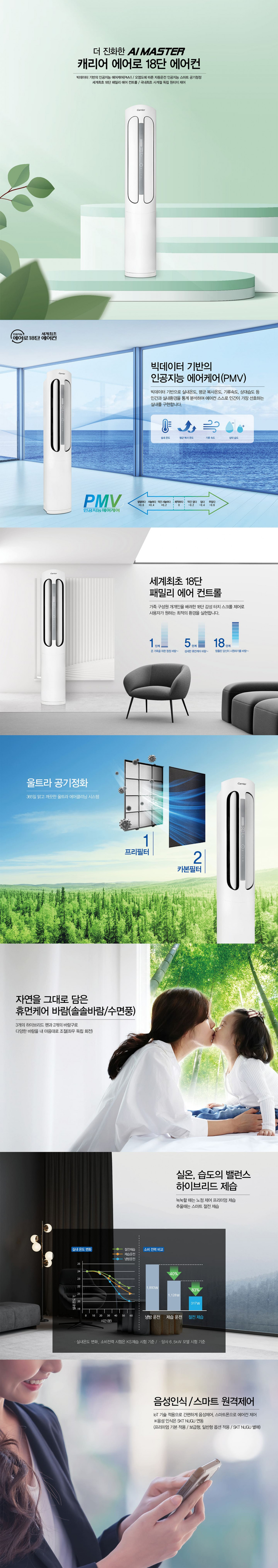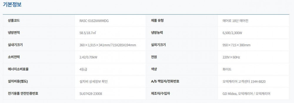 캐리어 2in1 에어컨 렌탈 에어로 18단 16평형+6평형 화이트 RASC-0162XAWMDG 72개월