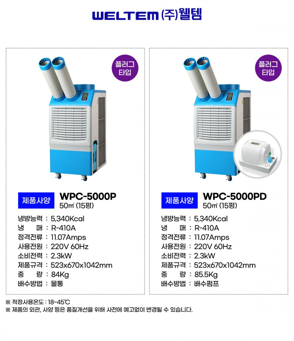 웰템 이동식 코끼리 에어컨 렌탈 15평형 WPC-5000PD 60개월