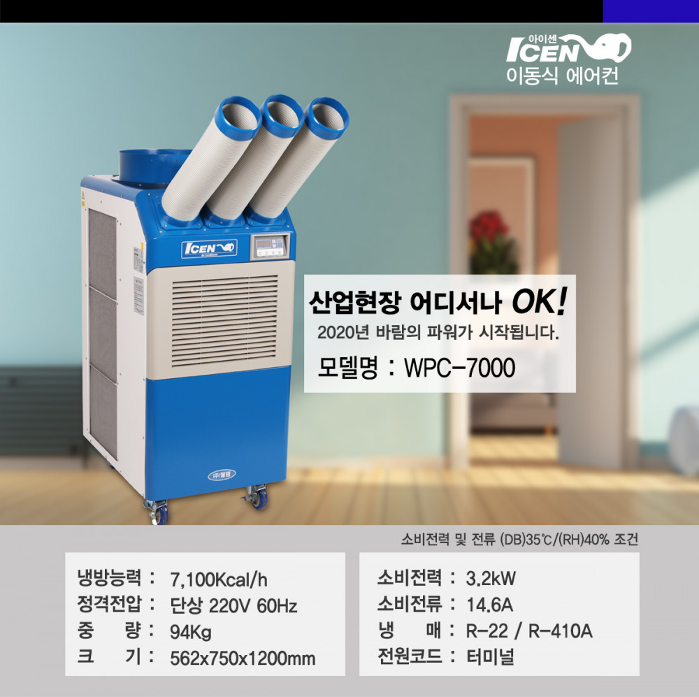 웰템 이동식 코끼리 에어컨 렌탈 21평형 WPC-6900 60개월