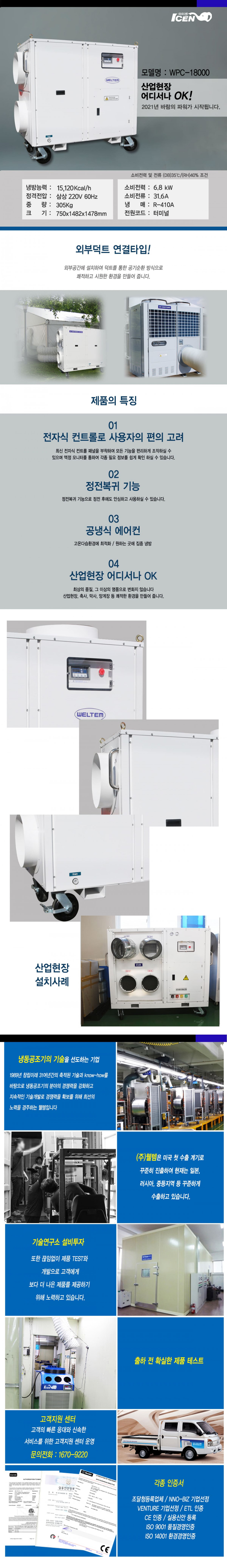 웰템 산업용 에어컨 렌탈 대형 덕트형 터미널타입 WPC-18000 60개월