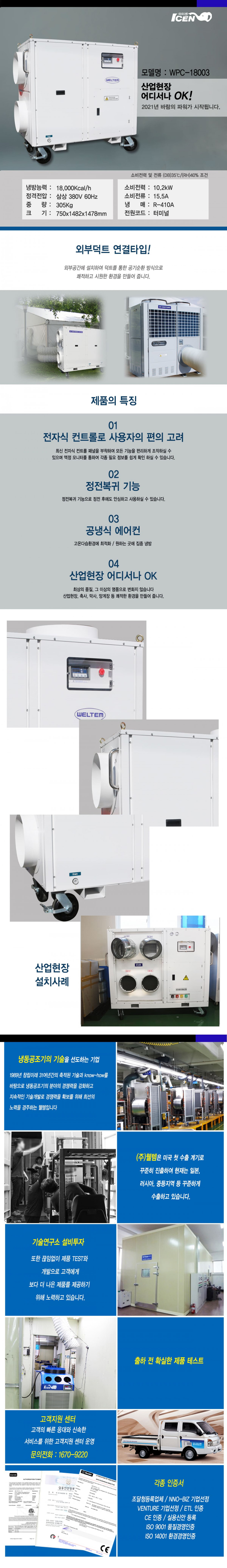 웰템 산업용 에어컨 렌탈 아이센 이동식 특수형 WPC-18003 60개월