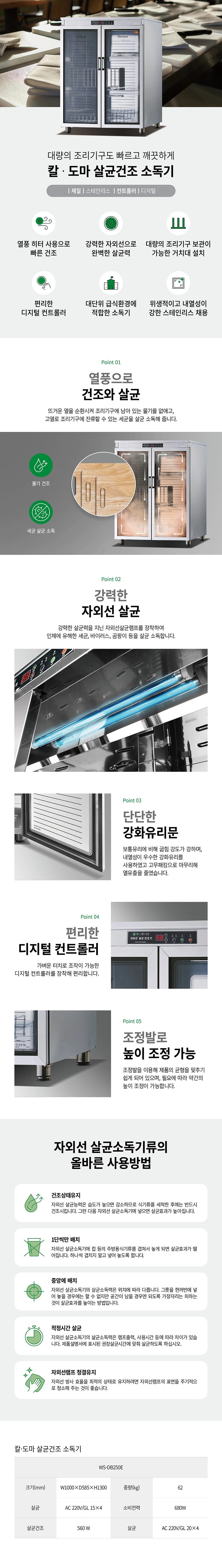 법인,관공서 전용 그랜드우성 칼도마 자외선 살균건조 소독기 WS-DB250E 렌탈 36개월 약정