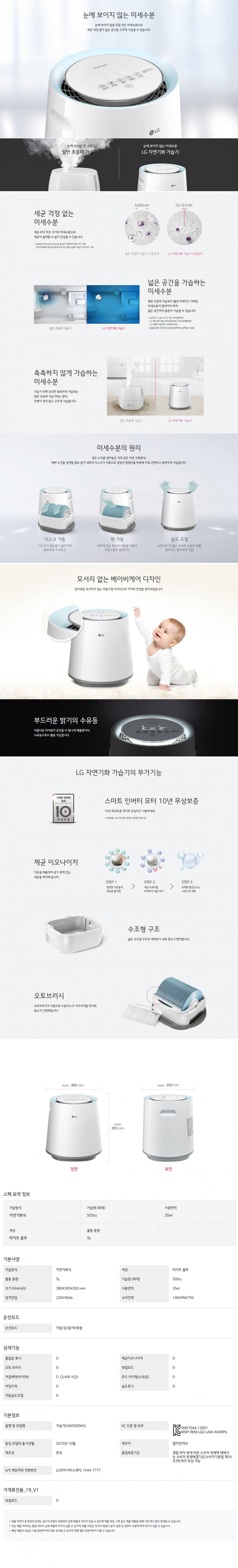 LG 가습기 렌탈 퓨리케어 5L 자연기화 라이트블루 HW500DAS 60개월