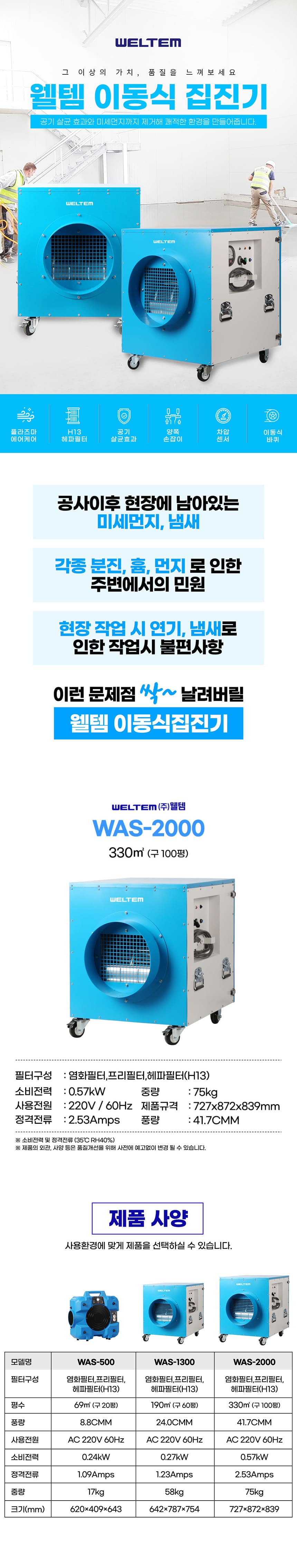웰템 집진기 렌탈 이동식 100평형 WAS-2000 60개월