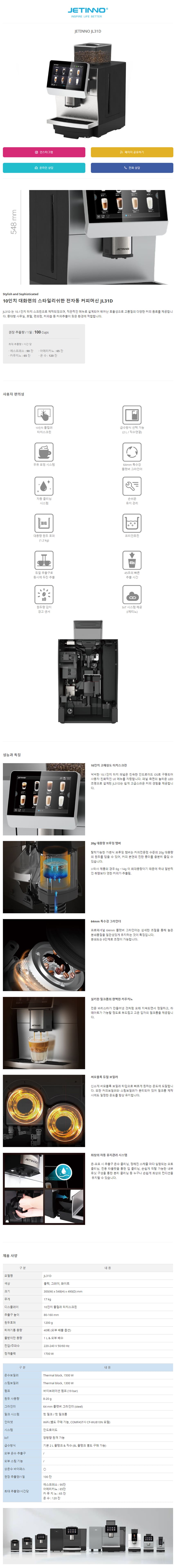 제티노 커피머신 렌탈 전자동 JL31D JETINNO JL31D 36개월